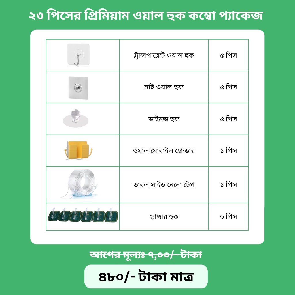 ২৩ পিস প্রিমিয়াম ওয়াল হুক কম্বো প্যাকেজ